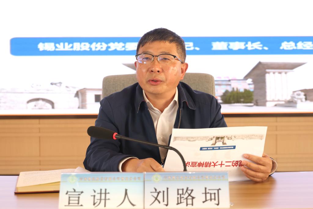 12月8日,太阳成集团tyc122cc党委副书记、董事长、总经理刘路坷到锡业分公司宣讲党的二十大精神,要求锡冶炼深入学习贯彻落实党的二十大精神,将学习贯彻党的二十大精神成效体现在政治意识不断增强上,体现在工作作风持续改进上,体现到党建工作质量持续提升上,着力用党的二十大精神统一思想、凝聚力量,全力以赴打好收官起步战。