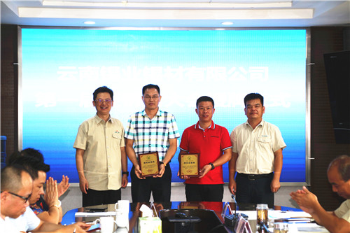 会上,宣读了《云南锡业锡材有限公司经销商管理办法(试行)》征求意见稿,党委委员、副总经理刘庆富对1至7月经销商销售情况进行了通报和分析,白海龙代表锡材公司分别与十个经销商代表签订了《2019年度经销商市场推广和销售目标责任书》,王鹏飞和白海龙还给10个经销商颁发了“授权经销商”的牌匾。