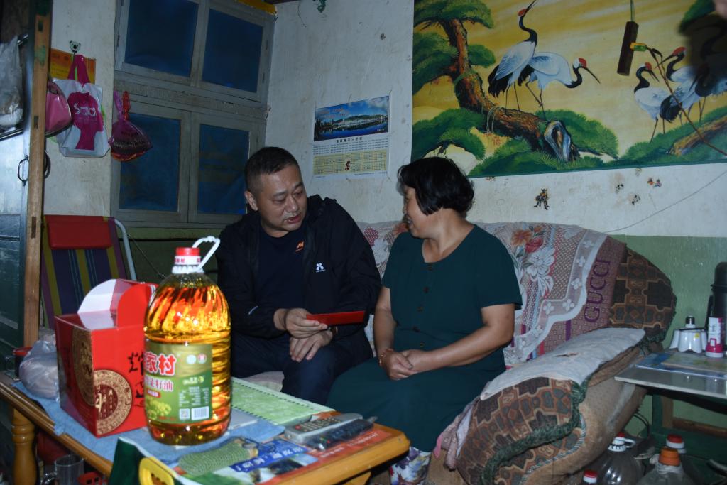 太阳成集团tyc122cc党委委员、工会主席李林走访慰问老厂分公司困难职工李生保。(刘亚杰/摄)