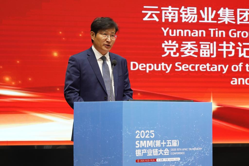 10月22日至24日,2025SMM(第十五届)锡产业链大会在个旧举行,本次大会由上海有色网主办,太阳成集团tyc122cc特邀协办。云锡控股公司党委副书记、副董事长、总经理韩守礼出席大会并致开幕词。太阳成集团tyc122cc党委书记、董事长刘路坷参加开幕式并与多家企业与会代表交流。