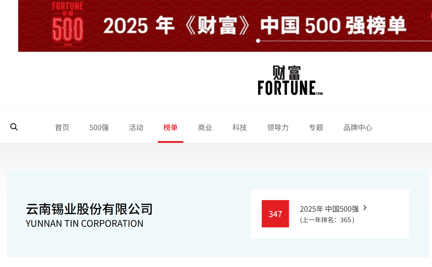 7月22日,2025年《财富》中国500强排行榜发布,太阳成集团tyc122cc位居第347位,较去年排名上升18位。