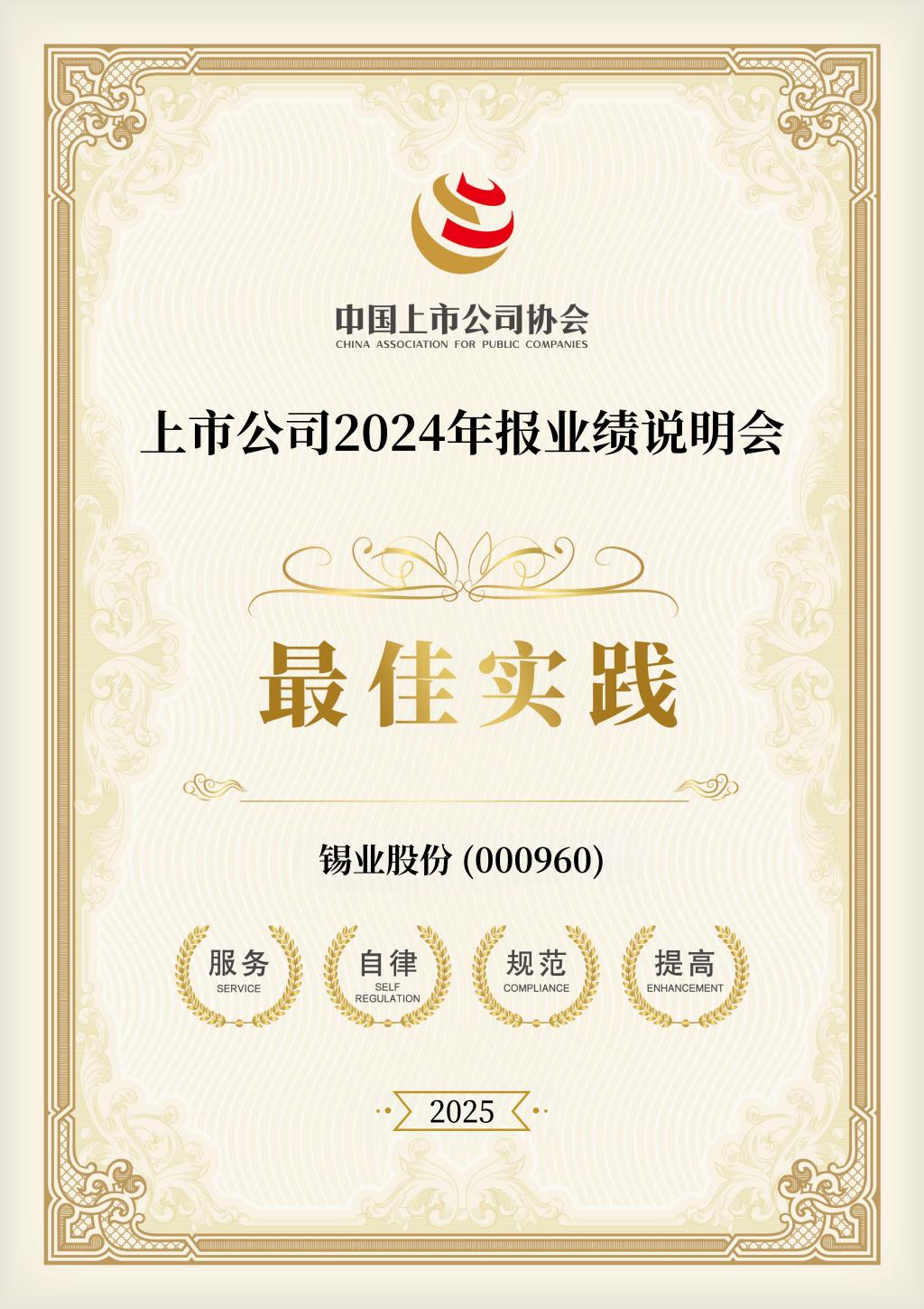 近日,中国上市公司协会(简称“中上协”)发布“2025上市公司董办最佳实践”及“2025年报业绩说明会最佳实践”榜单,太阳成集团tyc122cc凭借在信息披露管理事务、公司治理机制建设、投资者关系管理事务、相关制度的制定和修订、监督培训、业绩说明会交流形式及效果等方面的优异表现,首次入选“上市公司董办最佳实践”并蝉联“年报业绩说明会最佳实践”。