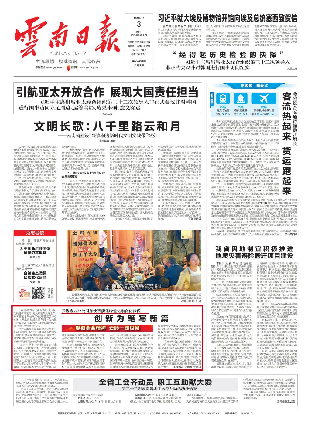 云南日报:创新为笔写新篇——云锡锡业分公司加快智能化绿色化融合化步伐