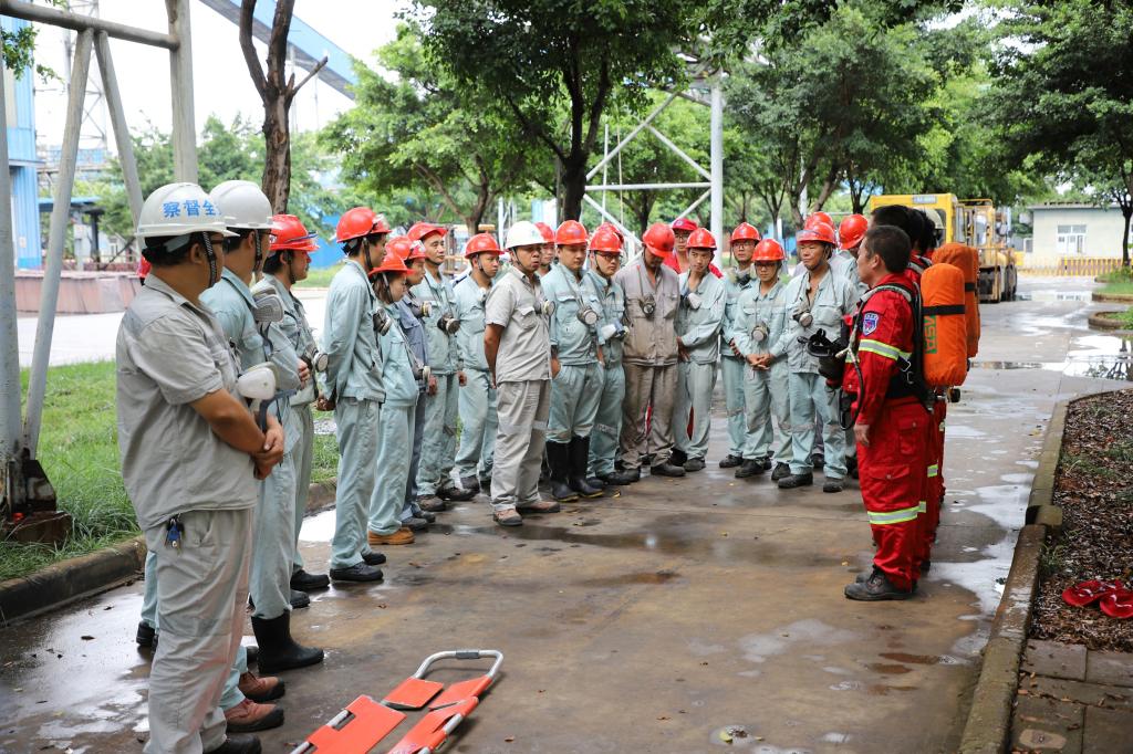 为提高应急救援队伍的快速反应、协同作战能力,进一步强化有限空间作业安全管理和安全防范意识。8月29日,云锡应急救援队铜冶炼小分队在电解车间循环工序开展有限空间作业事故应急救援演练,演练设置事故报告、预案启动、现场救援、善后处置、演练点评5个演练项目。