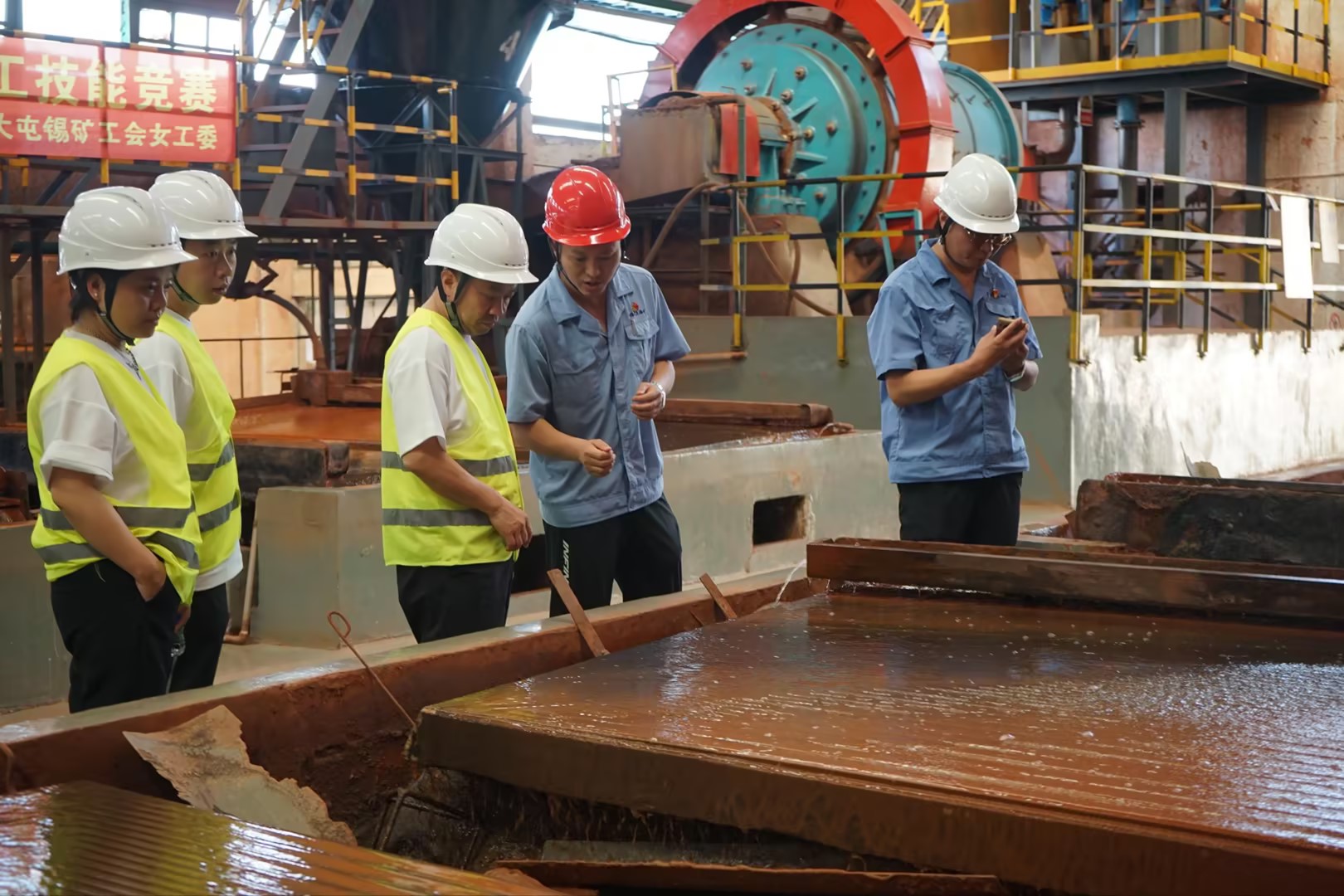会后,农业银行个旧市支行一行参观了选矿车间氧化矿工段,介绍了选矿工艺流程、规模、处理量等相关知识,就党建如何与生产经营中心工作深度融合进行了交流探讨。