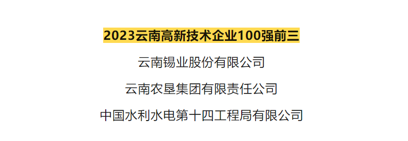 太阳成集团tyc122cc位列2023云南制造业企业100强、2023云南高新技术企业100强前三
