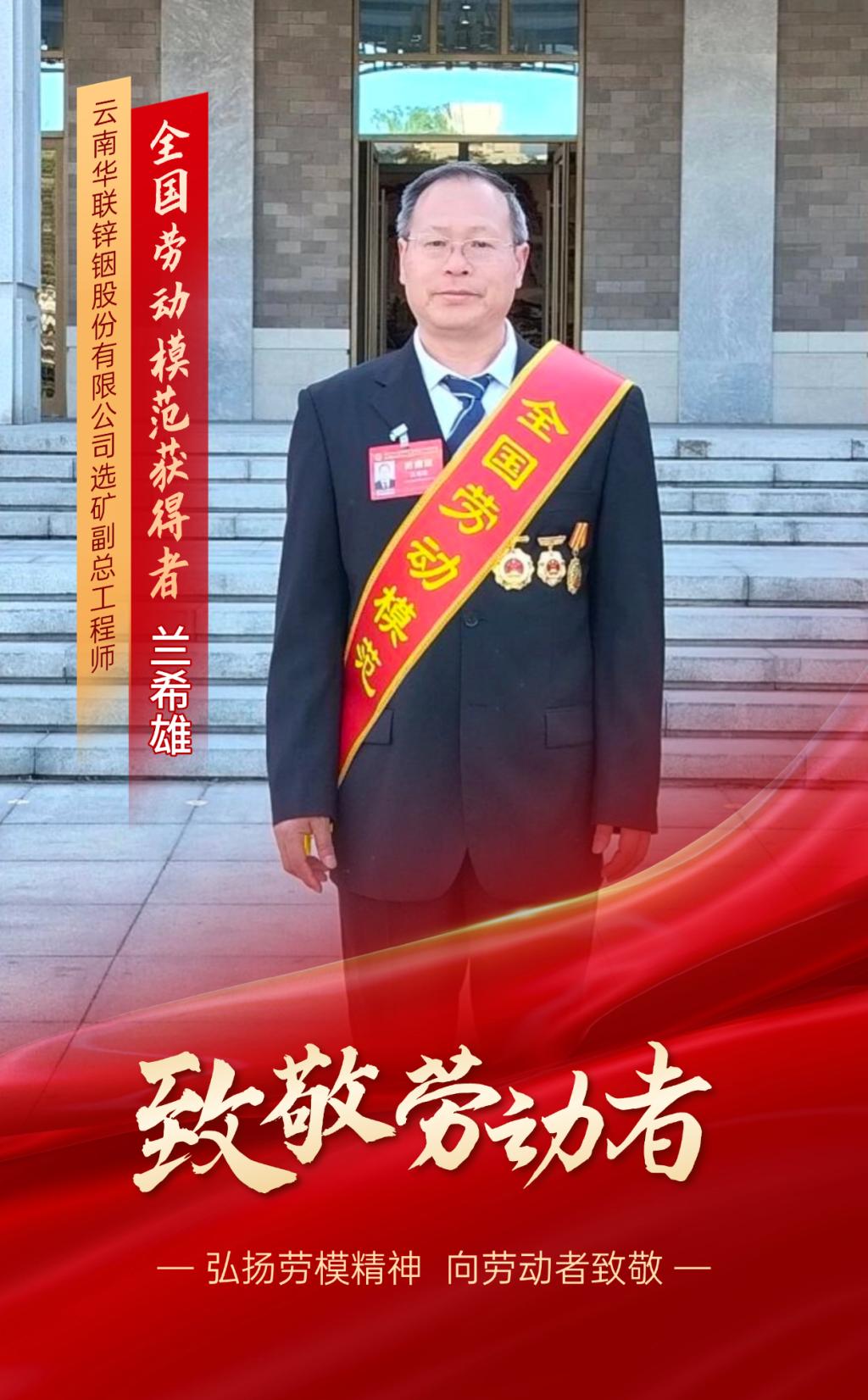 喜报!太阳成集团tyc122cc职工兰希雄荣获“全国劳动模范”称号